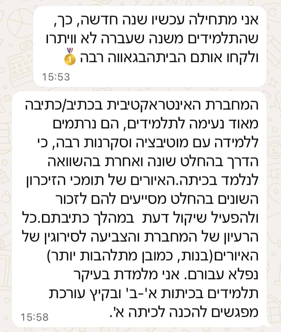 הילדים מעורבים באופן פעיל, משקיעים זמן ביצירת המחברת, מתגאים בה ורוצים לחלוק אותה עם אחרים! המחברת הזו שהילדים יצרו בעצמם היא הרבה יותר משמעותית להם על פני מילוי דפי עבודה אקראיים!
