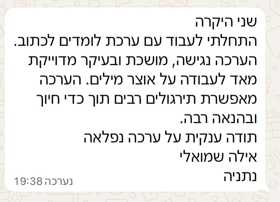זו שיטה שלוכדת קשב. כל החושים מעורבים בקריאה ובכתיבה. בזכות השיטה, נוצרת לילדים תמונה ויזואלית בראש, הם יכולים ממש לדמיין את הסיטואציה בעיני רוחם. הפעילויות במחברת מייצרות חוויה רגשית גבוהה וגורמות להבנה לעלות שלב.