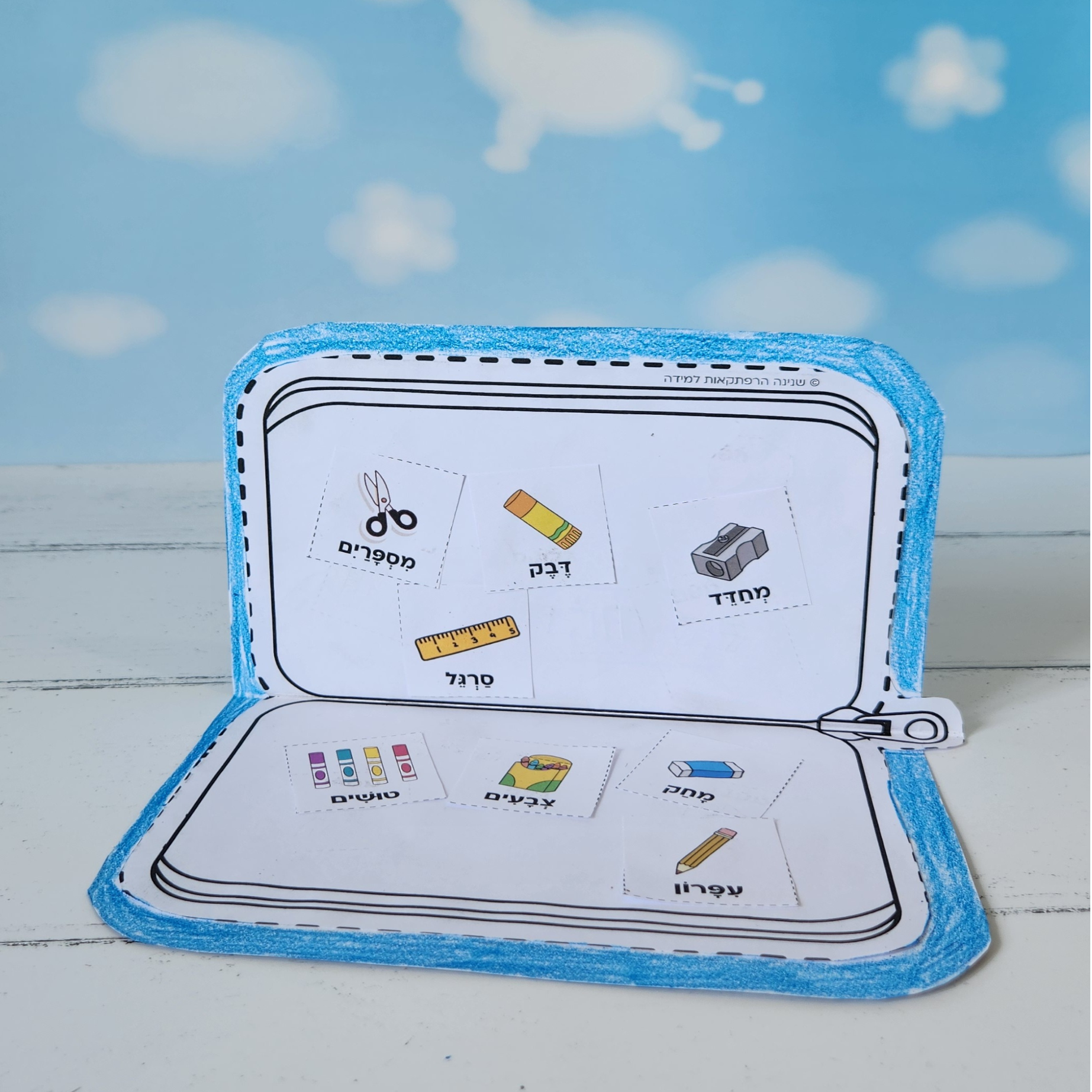 ערכת המחשה להדפסה להיכרות עם הציוד שבקלמר ותרגול כתיבת מילים חדשות